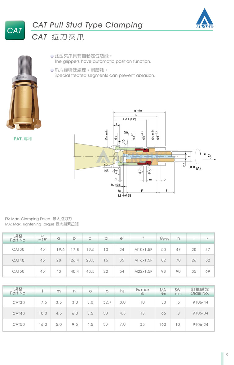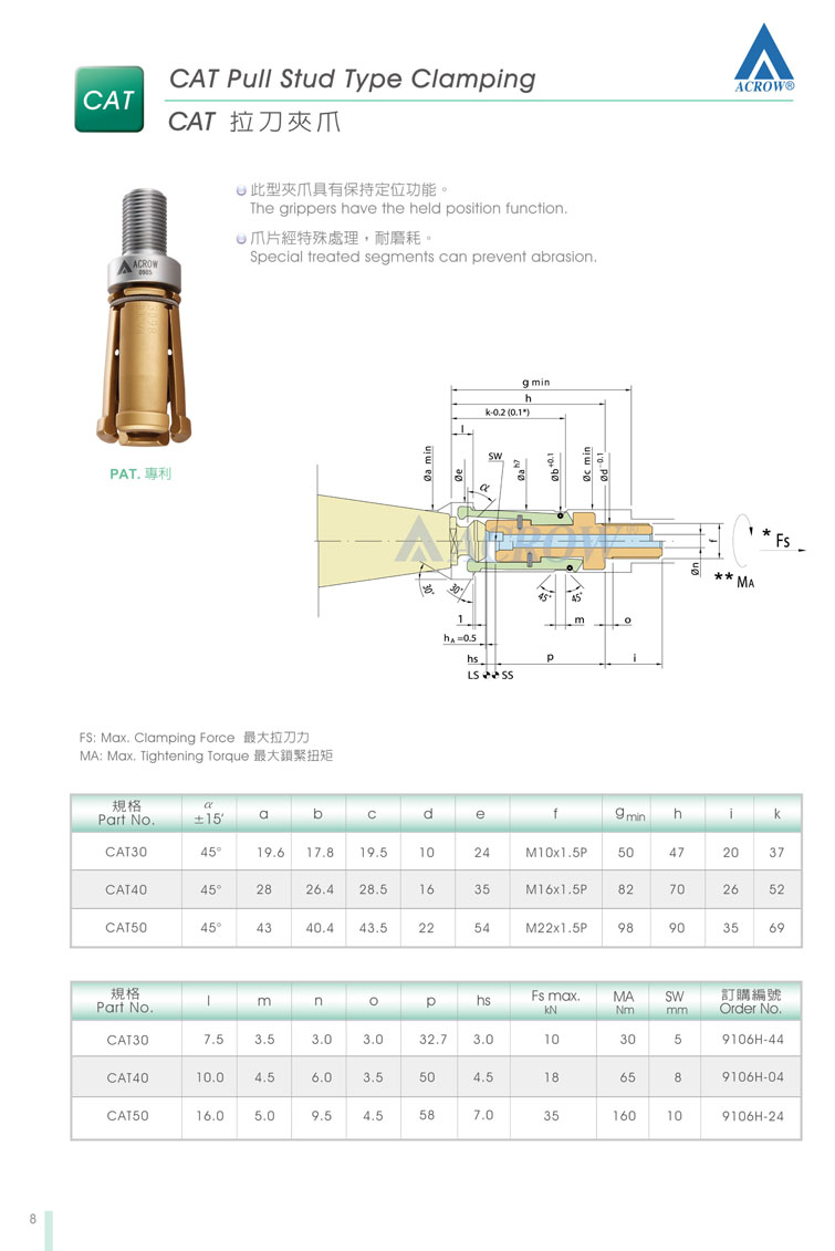 三:ACROW主軸拉爪配件