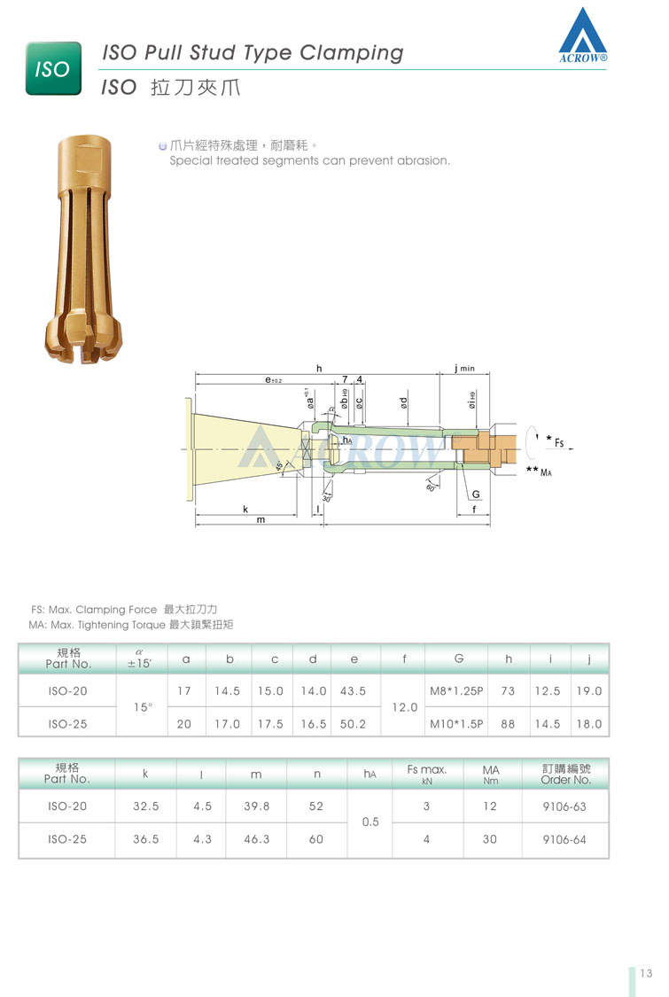 三:ACROW主軸拉爪配件