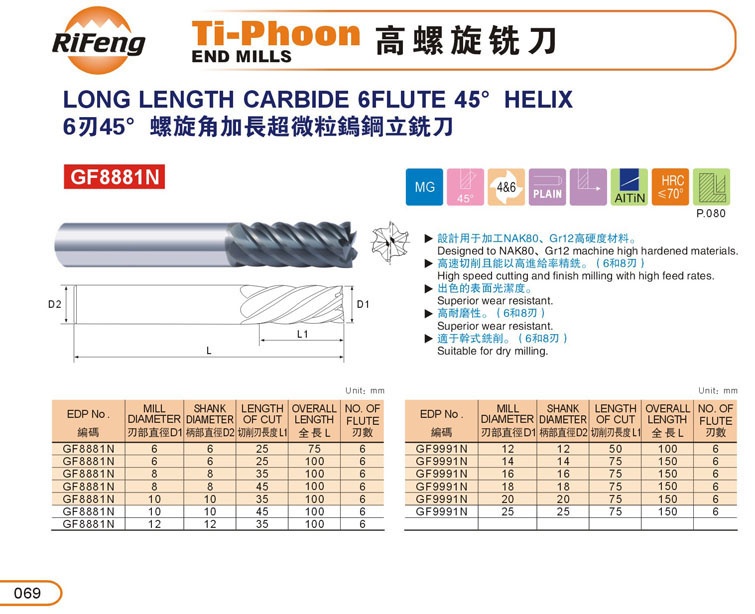 14. 6刃加長超微粒鎢鋼立銑刀069-2