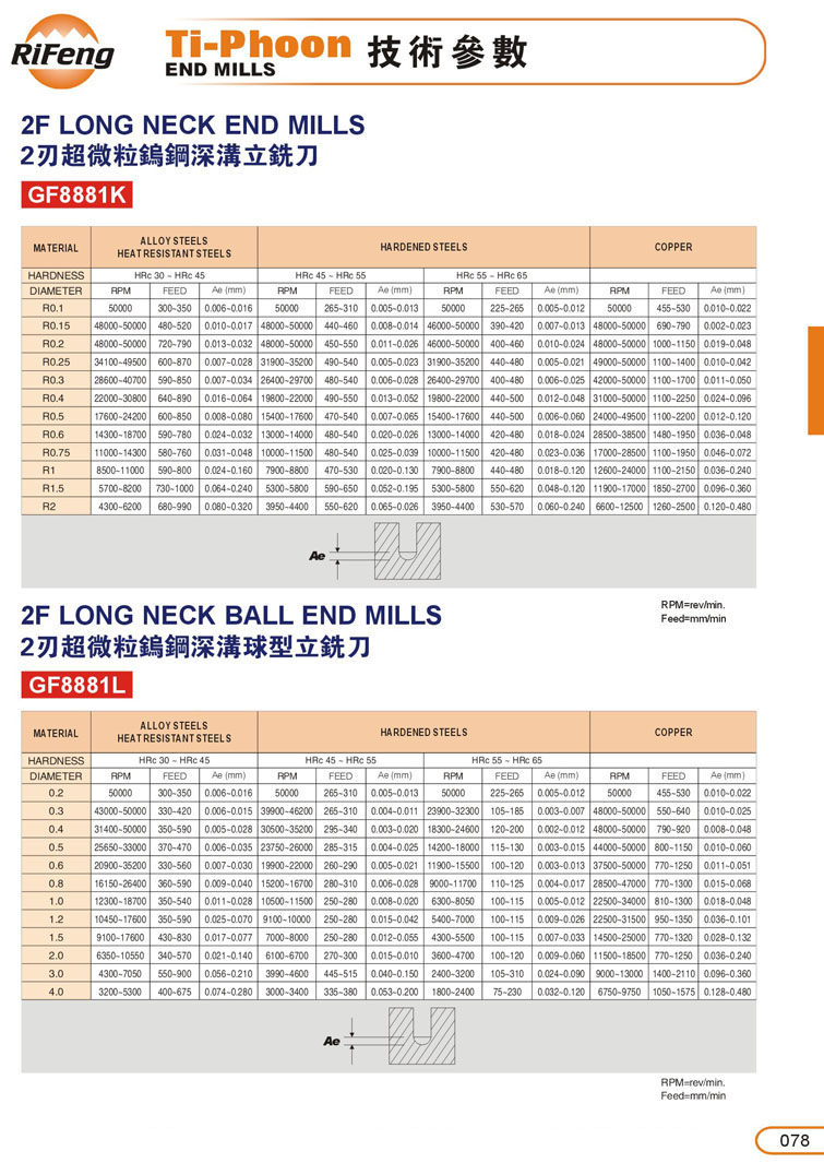 8. 2刃加長超微粒圓鼻鎢鋼立銑刀064