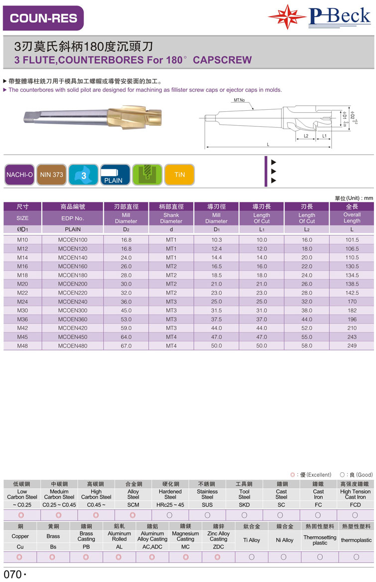 斜柄公制沉頭銑刀070