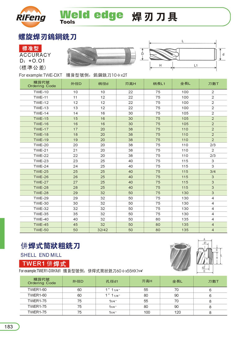 螺旋筒狀粗銑刀183