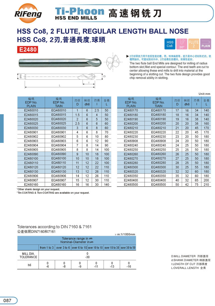 2刃球型白鋼銑刀087