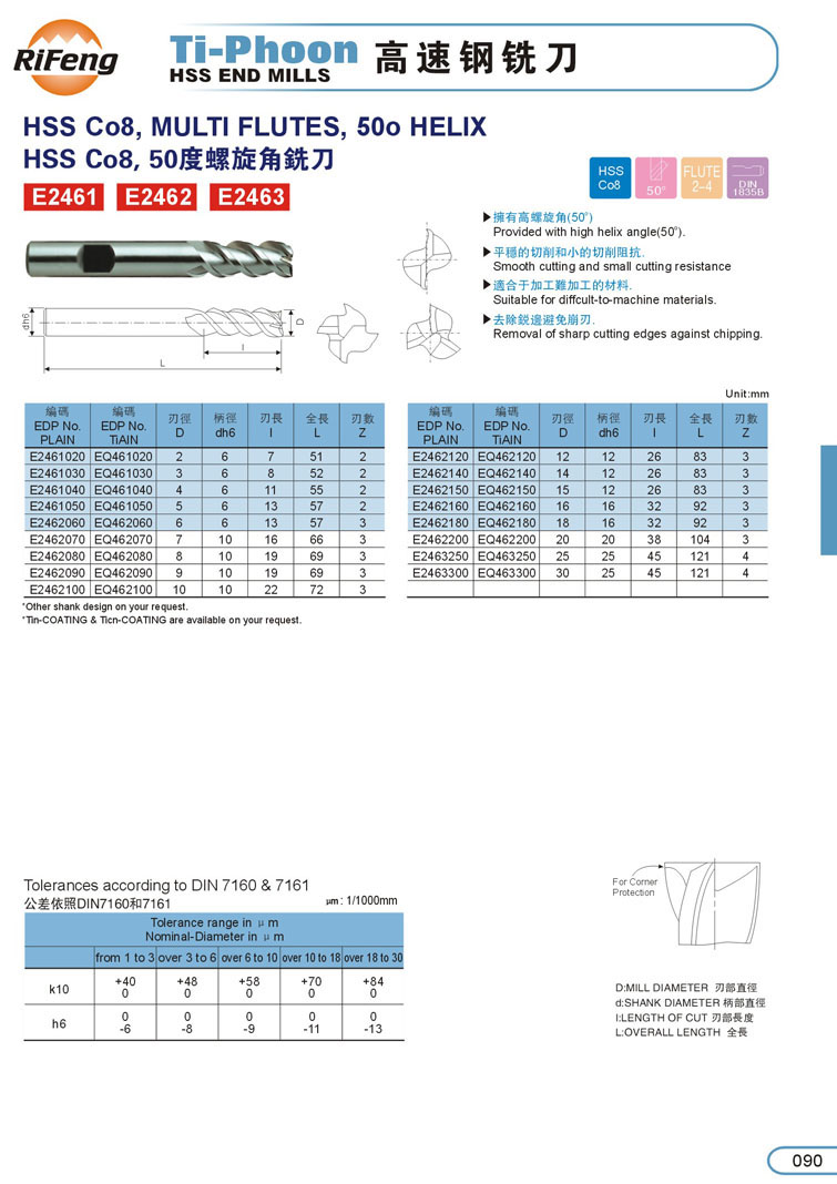 3刃鋁合金白鋼立銑刀090