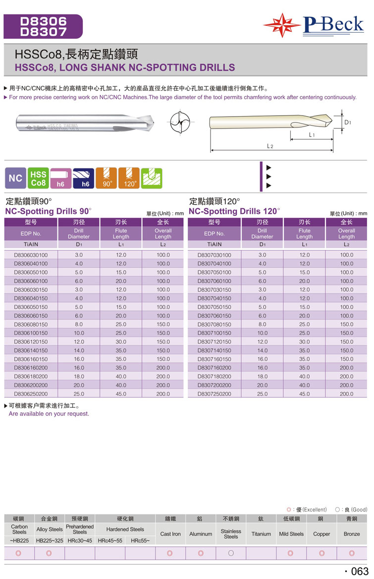 NC120度加長(zhǎng)柄定點(diǎn)鑽HSS CO定點(diǎn)鑽(062-2)
