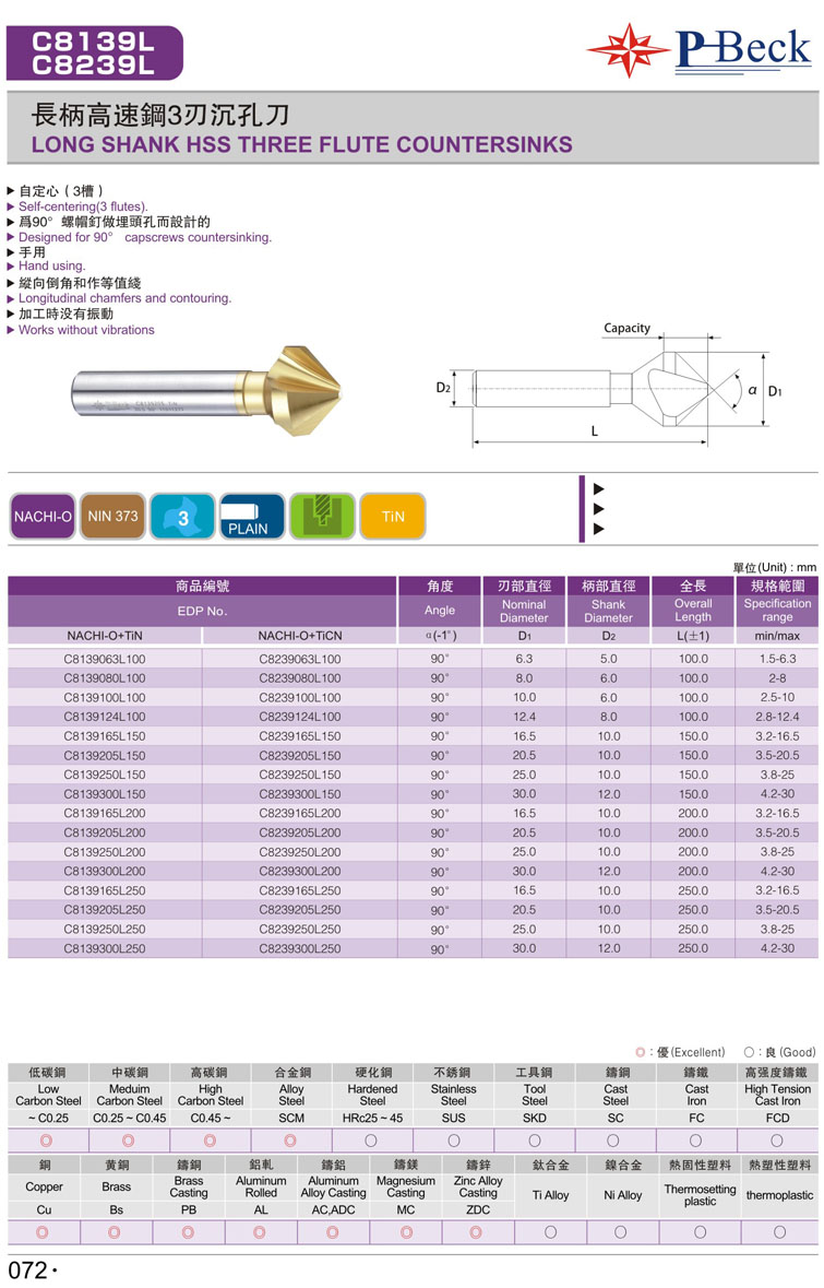 2. 3刃90度加長柄鍍鈦倒角刀071
