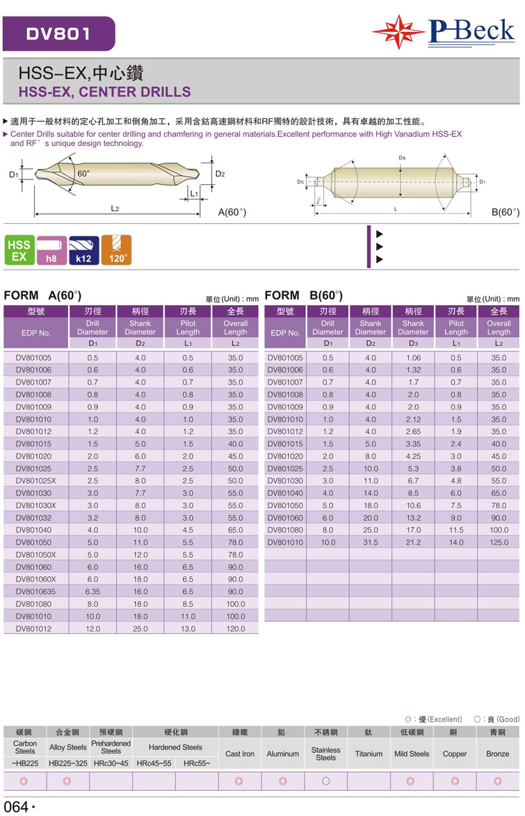 2. 加長(zhǎng)柄高速鋼中心鑽065