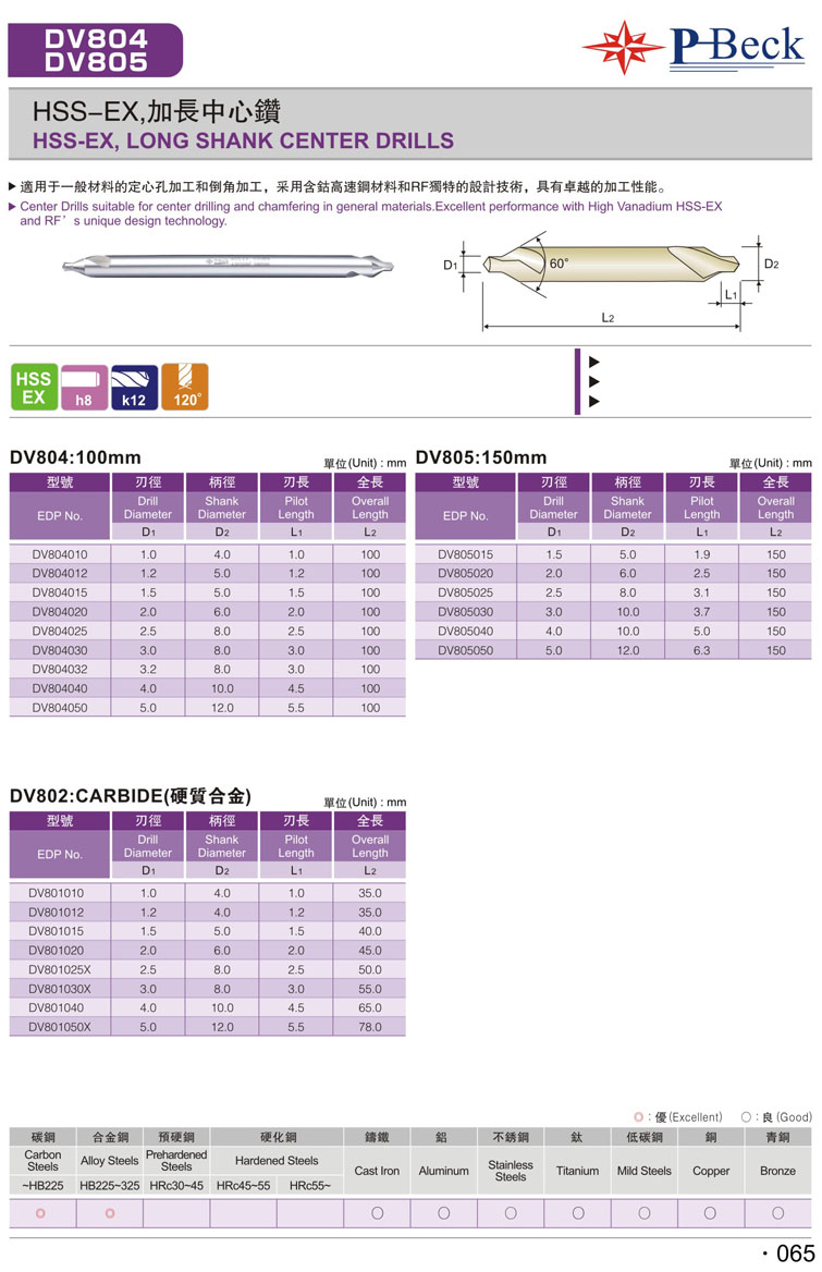 2. 加長柄高速鋼中心鑽065