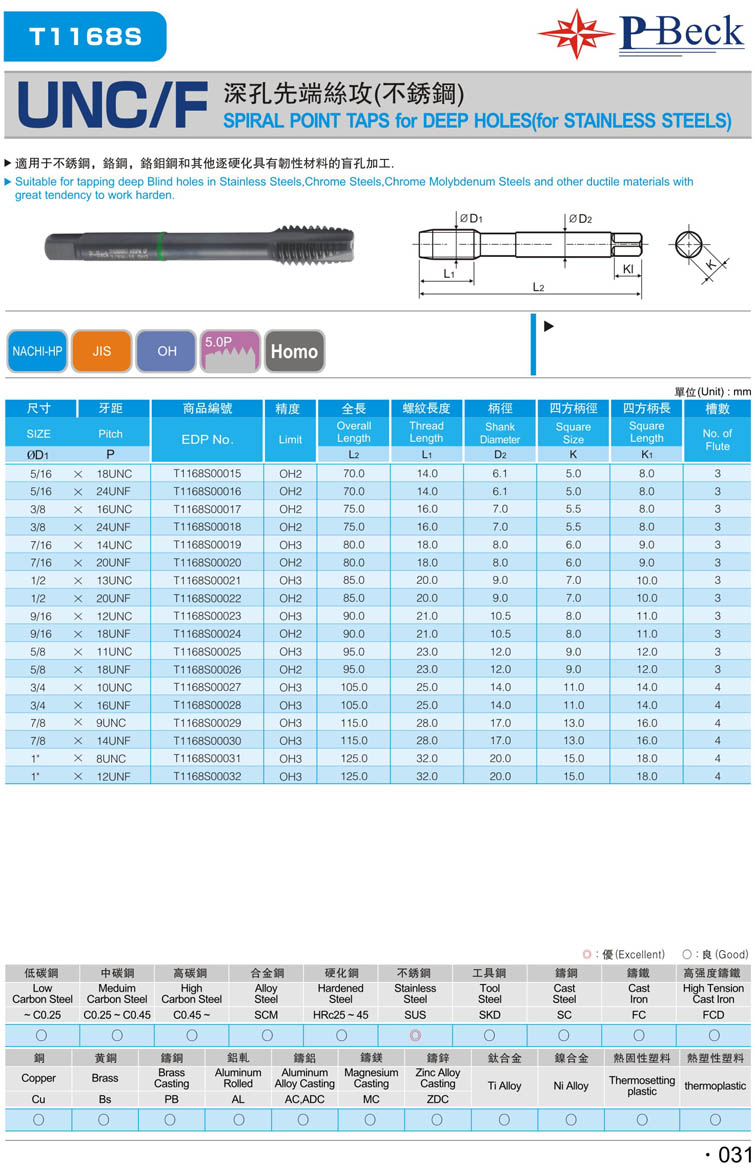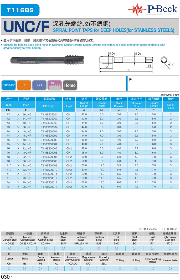 16. 美制不銹鋼先端絲攻027