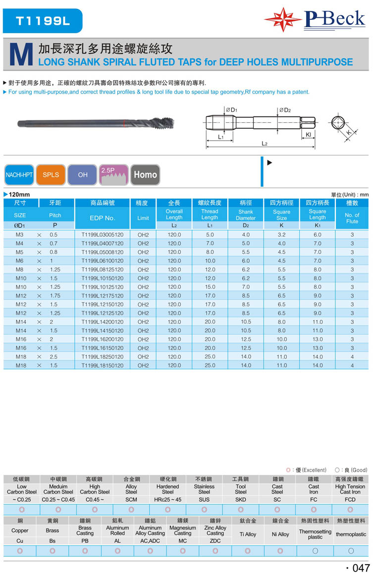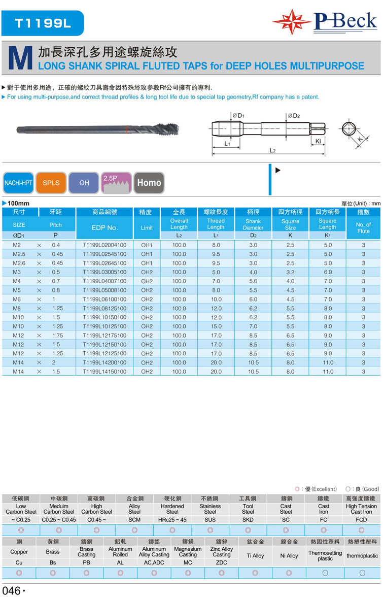 加長(zhǎng)公制螺旋鋼件絲攻046