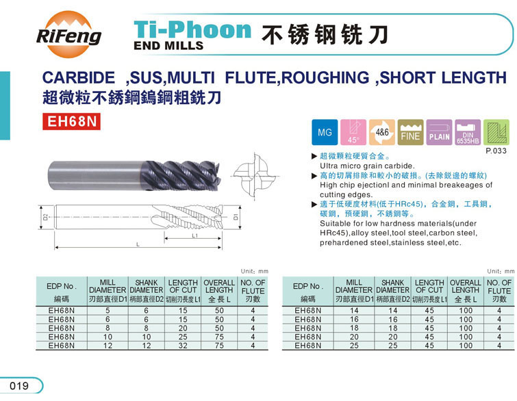 4. 4刃加長(zhǎng)不銹鋼粗銑刀019-2