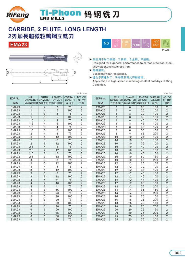 2. 2刃加長超微粒鎢鋼立銑刀002