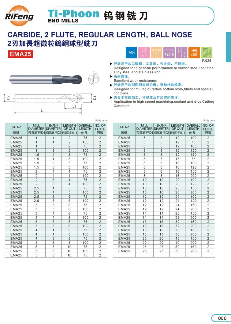 2刃加長(zhǎng)球型超微粒鎢鋼立銑刀006
