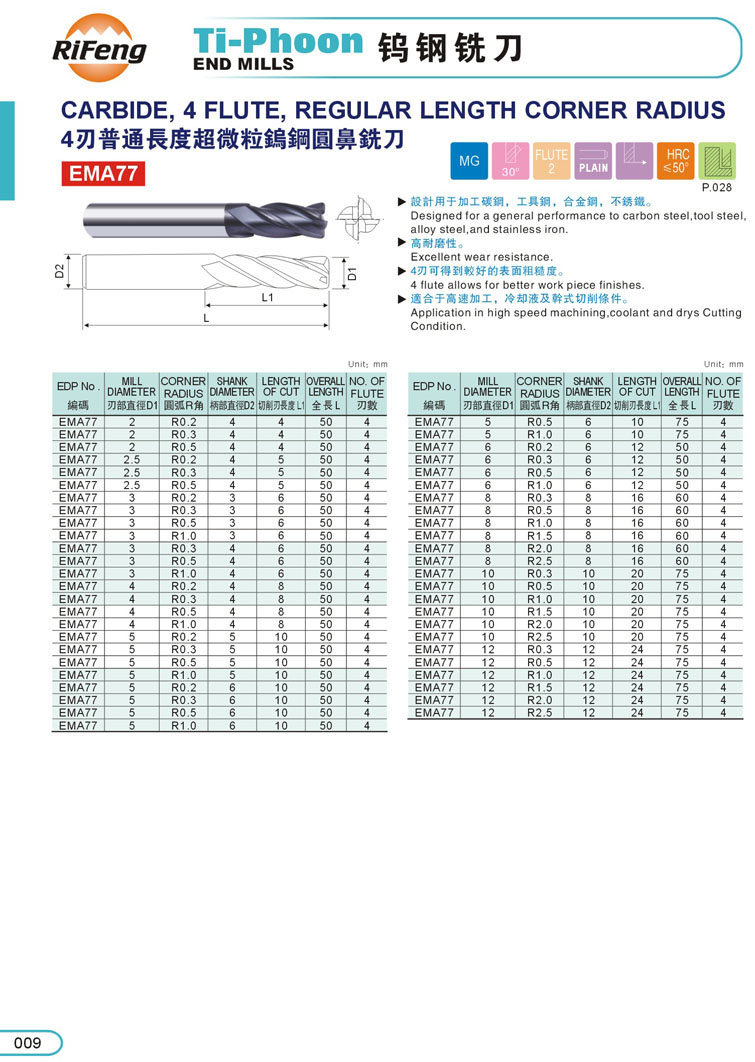 9. 4刃超微粒圓鼻鎢鋼立銑刀009