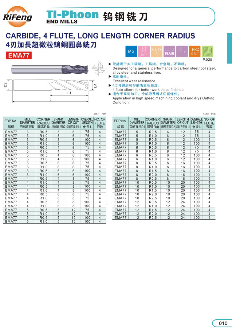 10. 4刃加長超微粒圓鼻鎢鋼立銑刀010