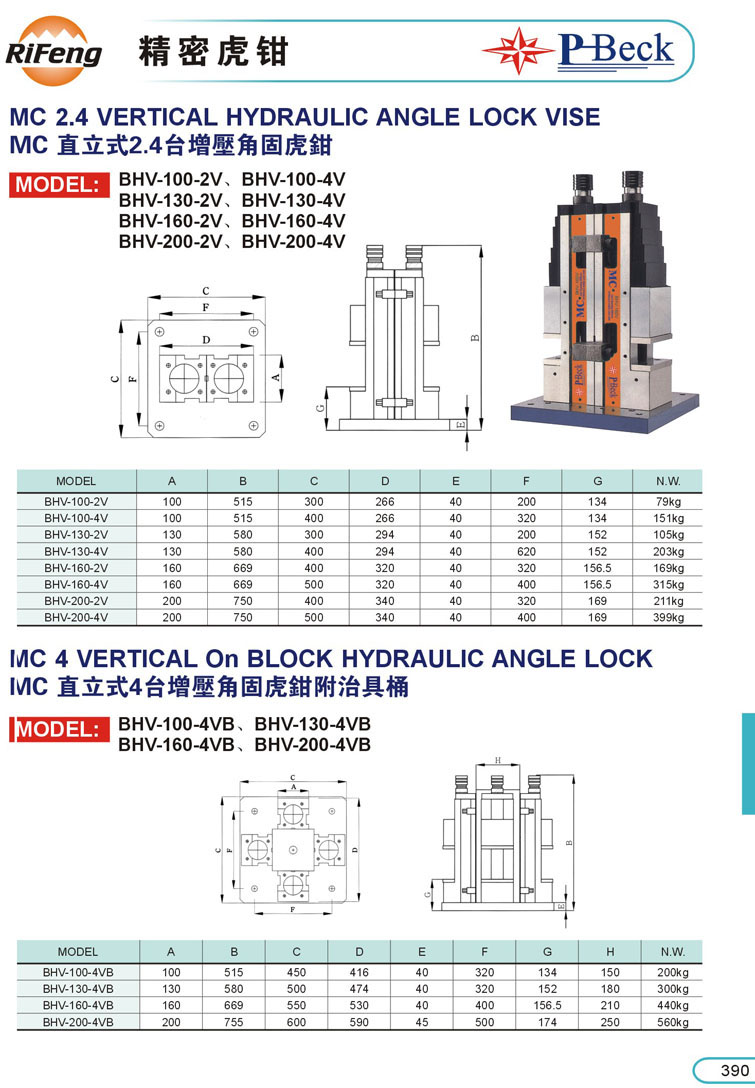 立式並列倍力油壓虎鉗390