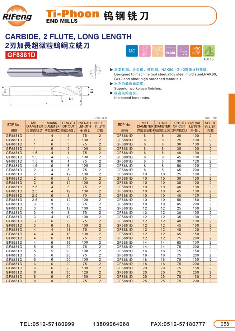2. 2刃加長超微粒鎢鋼立銑刀058