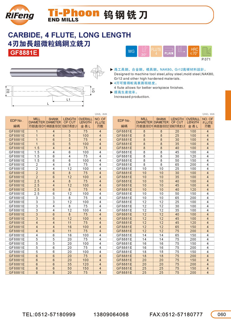 4刃加長(zhǎng)超微粒鎢鋼立銑刀060